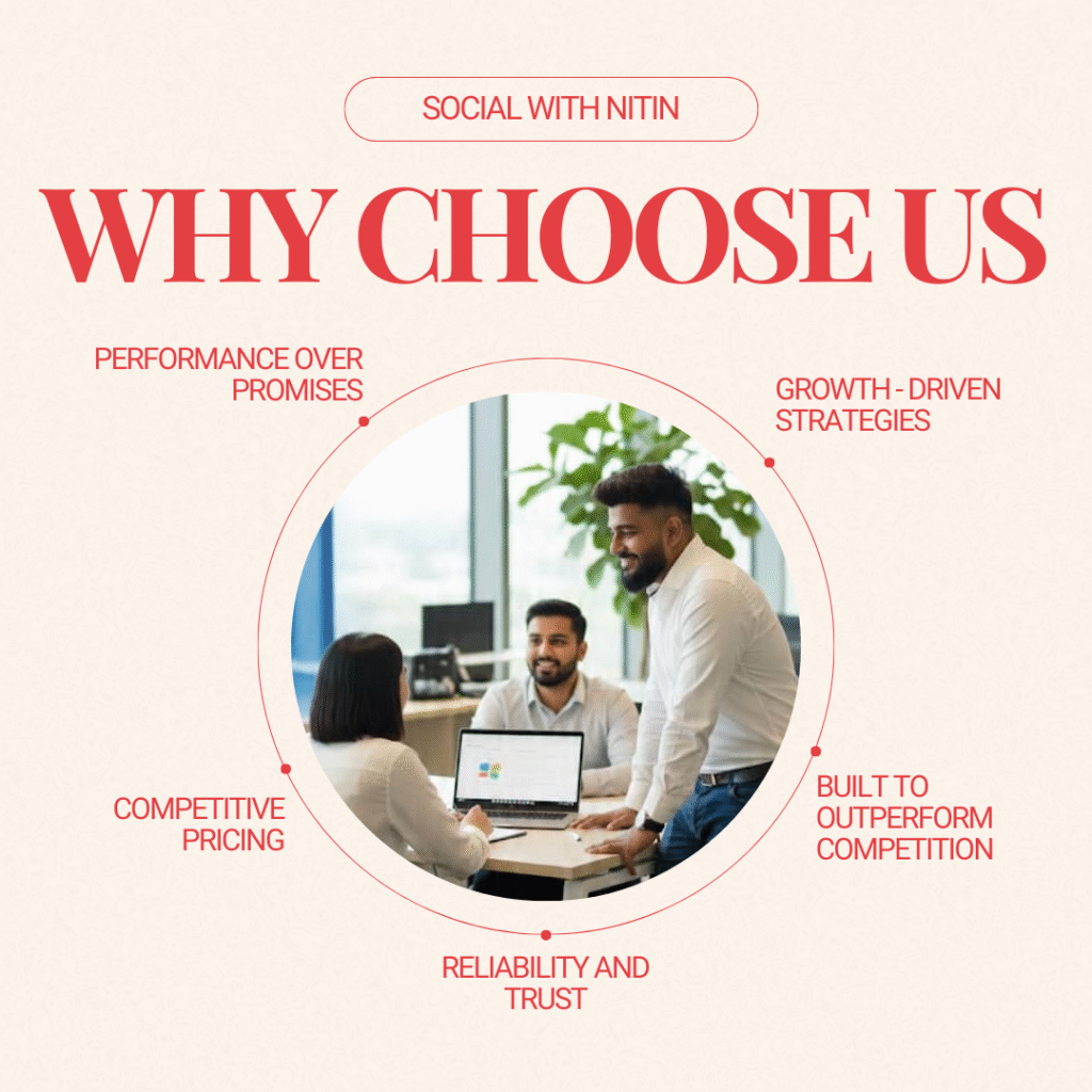 Whether you’re launching your first digital campaign, struggling to get consistent leads, or scaling an established business to the next level, Social With Nitin brings the speed, strategy and execution needed to outperform your competition. We work with clarity, transparency and performance at the core, ensuring that every rupee you invest works harder for your business.